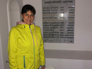 A Brigiről készült kép Salgótarjánban készült, a Sportcsarnok Dicsőségfalánál, ahol a nógrádi olimpikonok nevei, köztük az övé, olvashatóak a márványtáblán. Salgótarjánban töltötte gyermekkora egy részét, beleérte az általános iskolai és gimnáziumi éveket is.